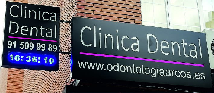 Rótulo luminoso de metacrilato en el frente e iluminación interior.